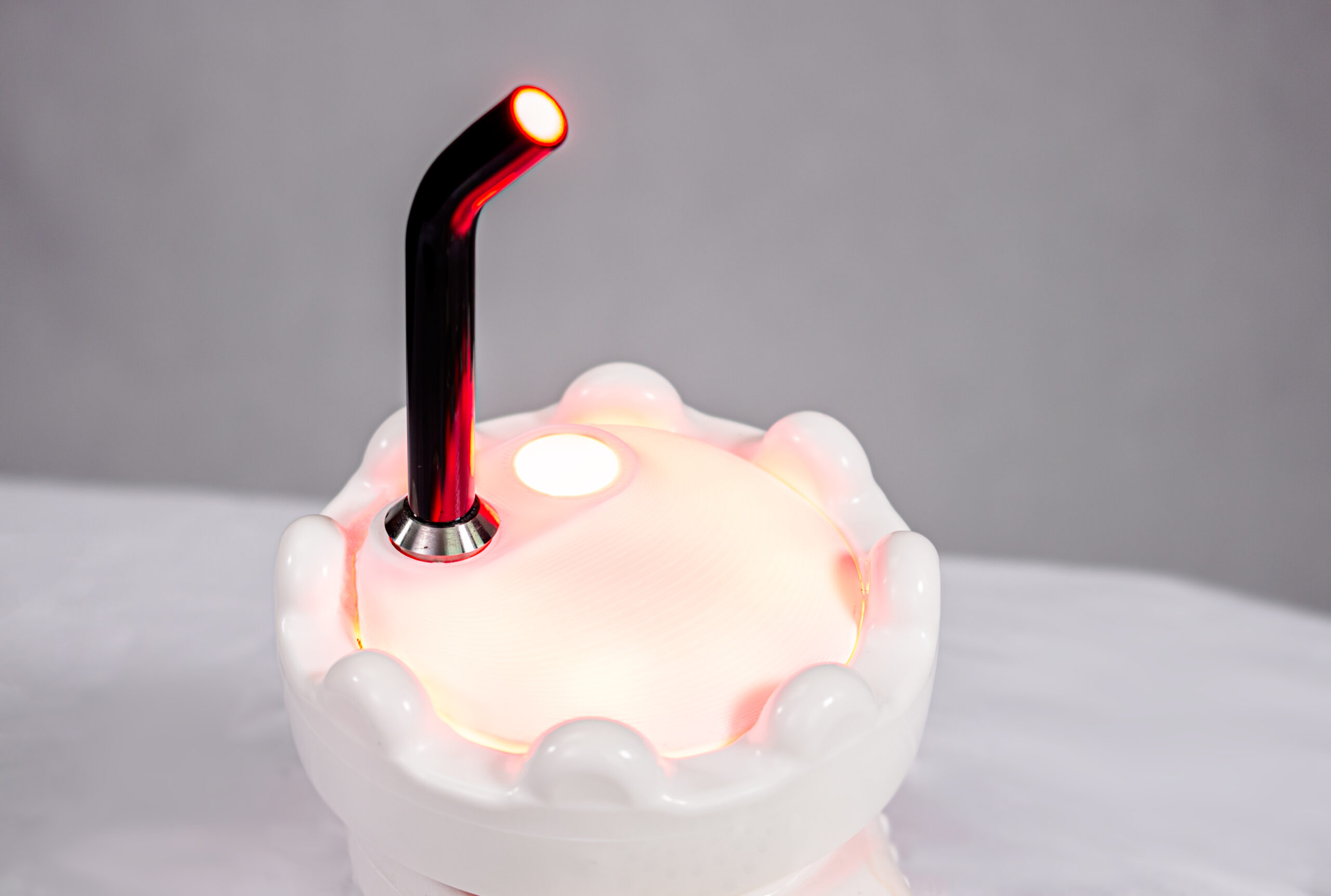 Since the 1050nm near-infrared (NIR) light is outside of the human visual spectrum and is hard to see, we added 1 single red light to indicate that the 1050nm setting is working. Another way to tell that the NIR is working is to view it using the camera of certain phones.